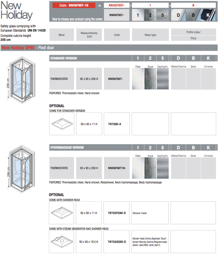 Novellini – New Holiday GF90 – Pivot Door Shower Cubicle